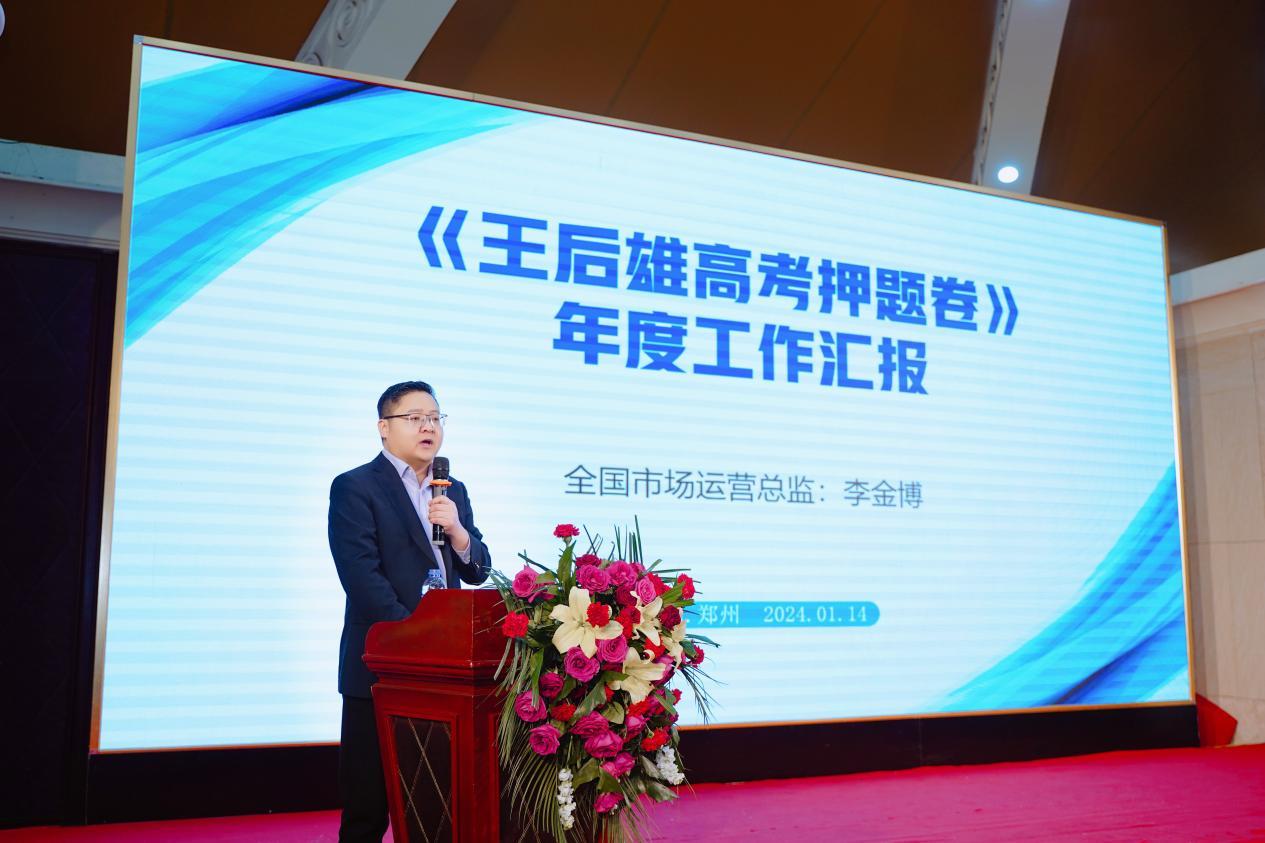 目尽晴雪远,霜重不觉寒。2024年01月14日《王后雄高考押题卷》全国市场发布会在郑州逸泉国际酒店成功举行。来自全国各地270多位教育人士参加了本次会议,欢聚中原,共谋发展。《王后雄高考押题卷》全国市场运营总监、中国教育电视台智库专家、中国关工委教育中心生涯教育专业委员会理事,李金博先生致欢迎词,并做2023年度销售工作报告,就过去一年销售成果和运营心得做了详细汇报。