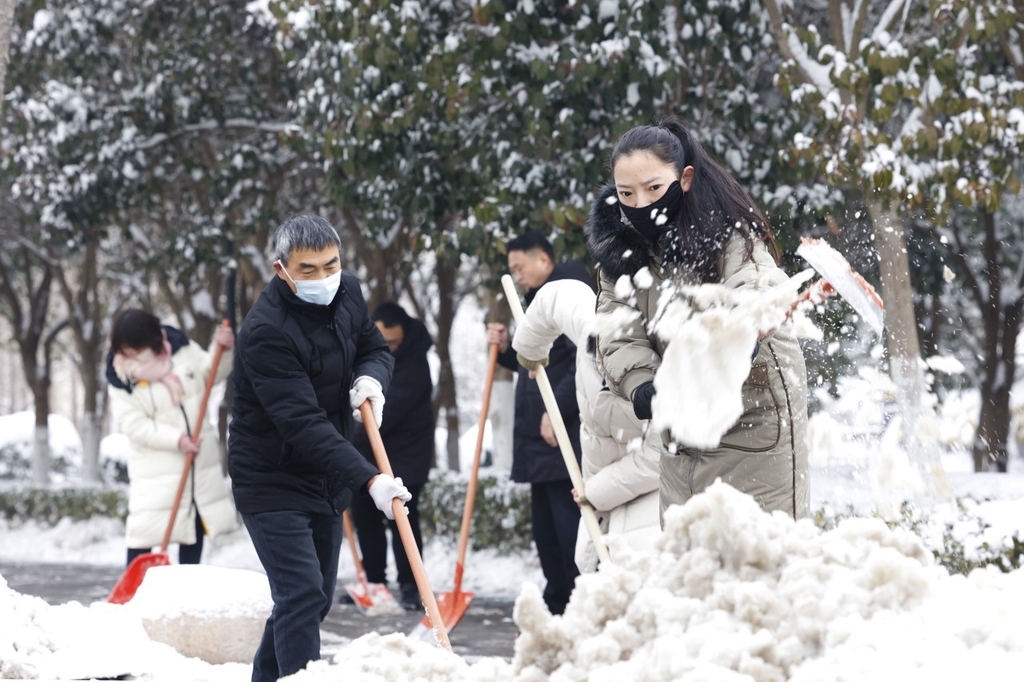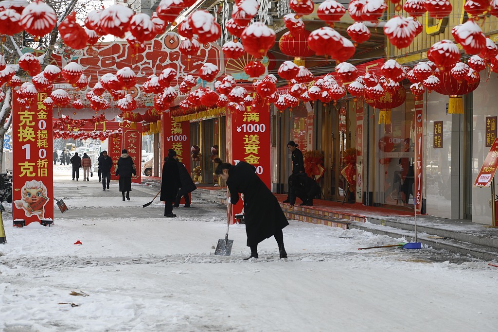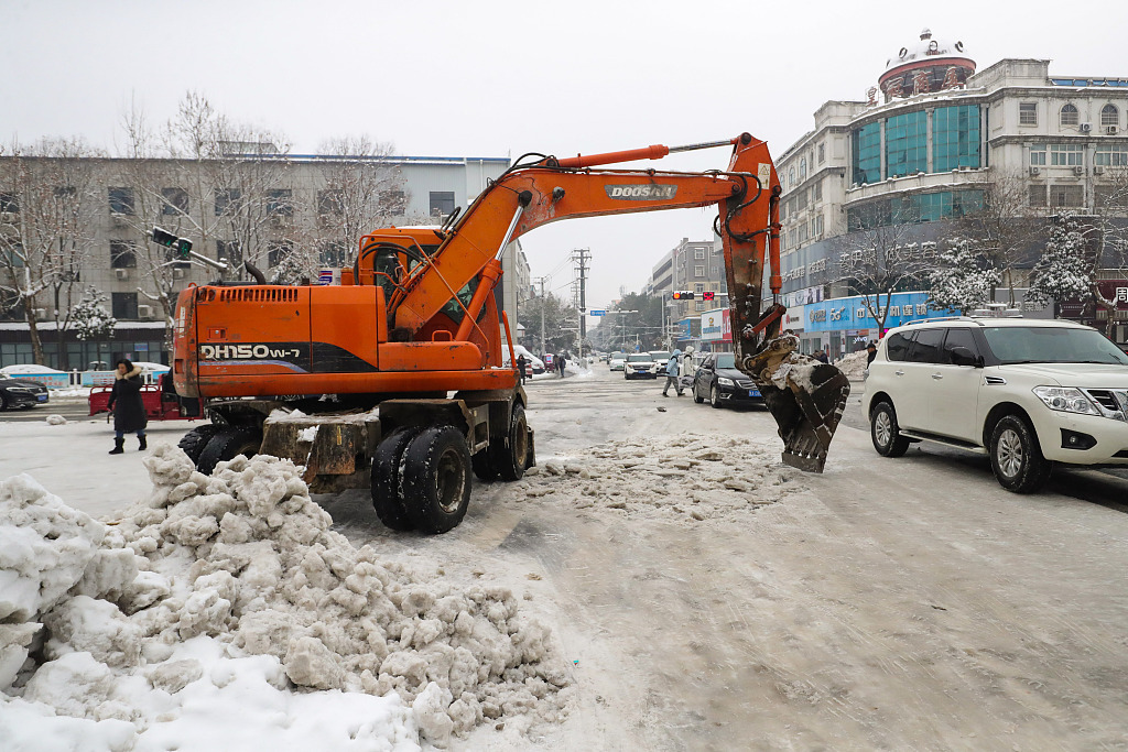 2024年2月5日,江苏省徐州市丰县城区,各行各业联合清除积雪。