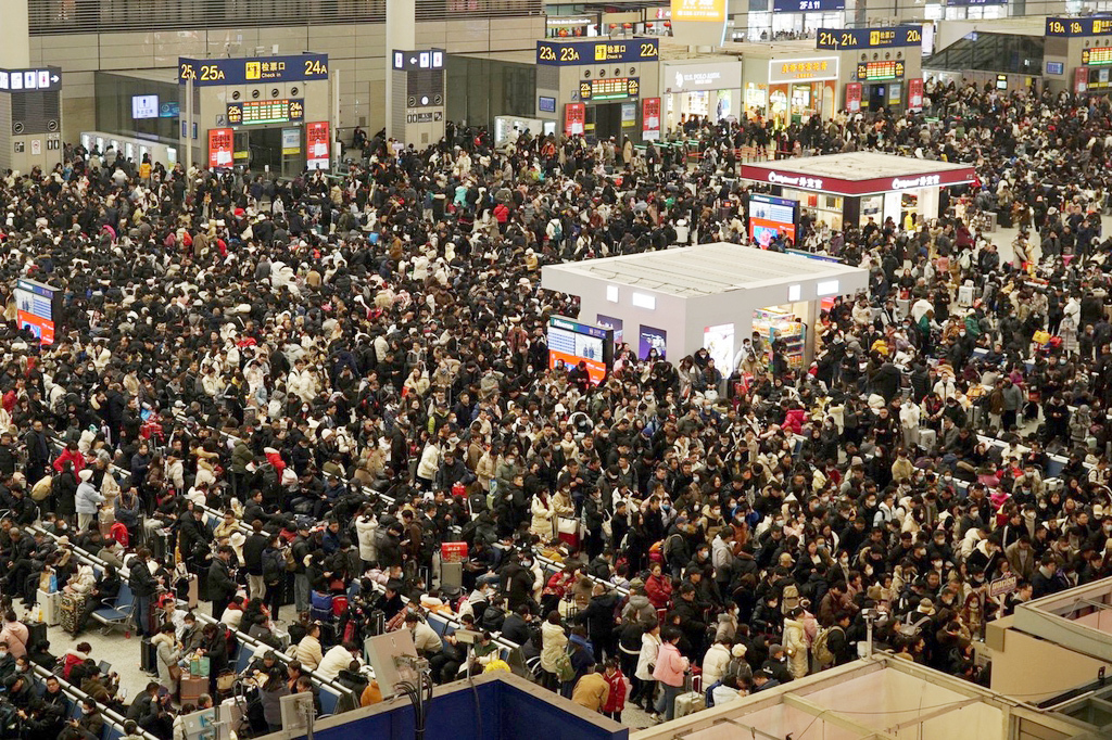 2024年2月5日,春运已经进入第11天,上海虹桥火车站迎来大批返乡旅客,车站内人潮涌动。