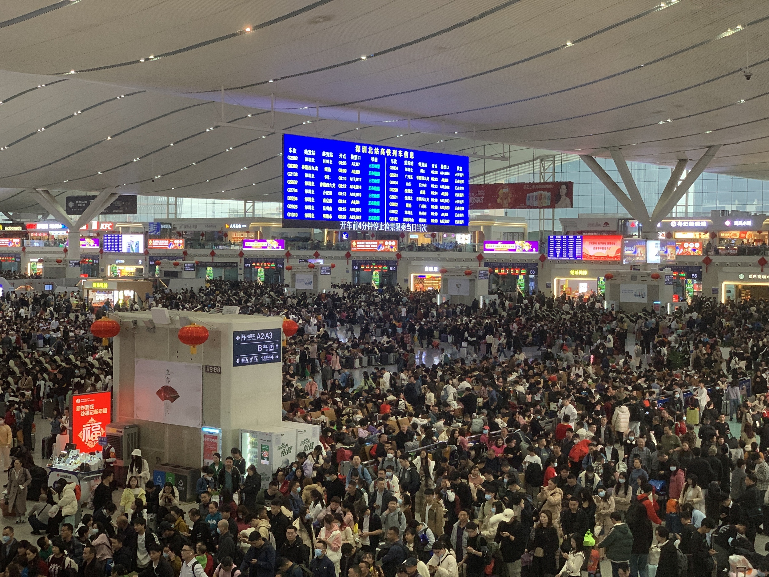 2024年2月5日,深圳北站站内人山人海,人头涌动,旅客归家心切。