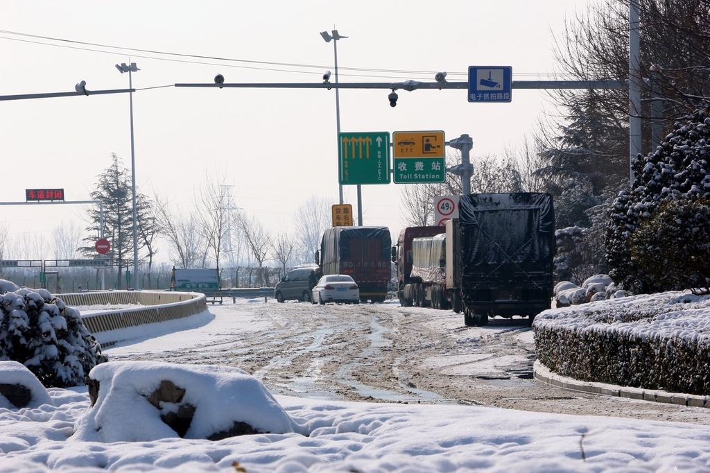 2024年2月5日,山东邹城,受强降雪影响,G3京台高速邹城入口临时关闭,多部门正在清理积雪,争取尽早开放。