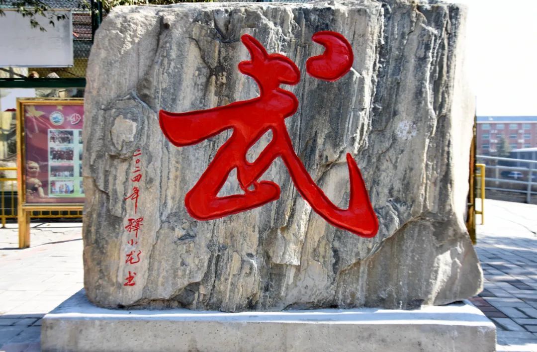少林小龙教育集团董事长陈同山亲笔题写了“少林小龙武术学校”校名等内容,还特邀武术界书法名人梁继红、王占洋分别参与了校园文化景观石的内容题写。最为值得惊喜的是竖立于学校办公楼前广场东西主干道两边的“文”“武”景观石是影视演员释小龙所题,这也是他的书法首次亮相,值得欣赏。