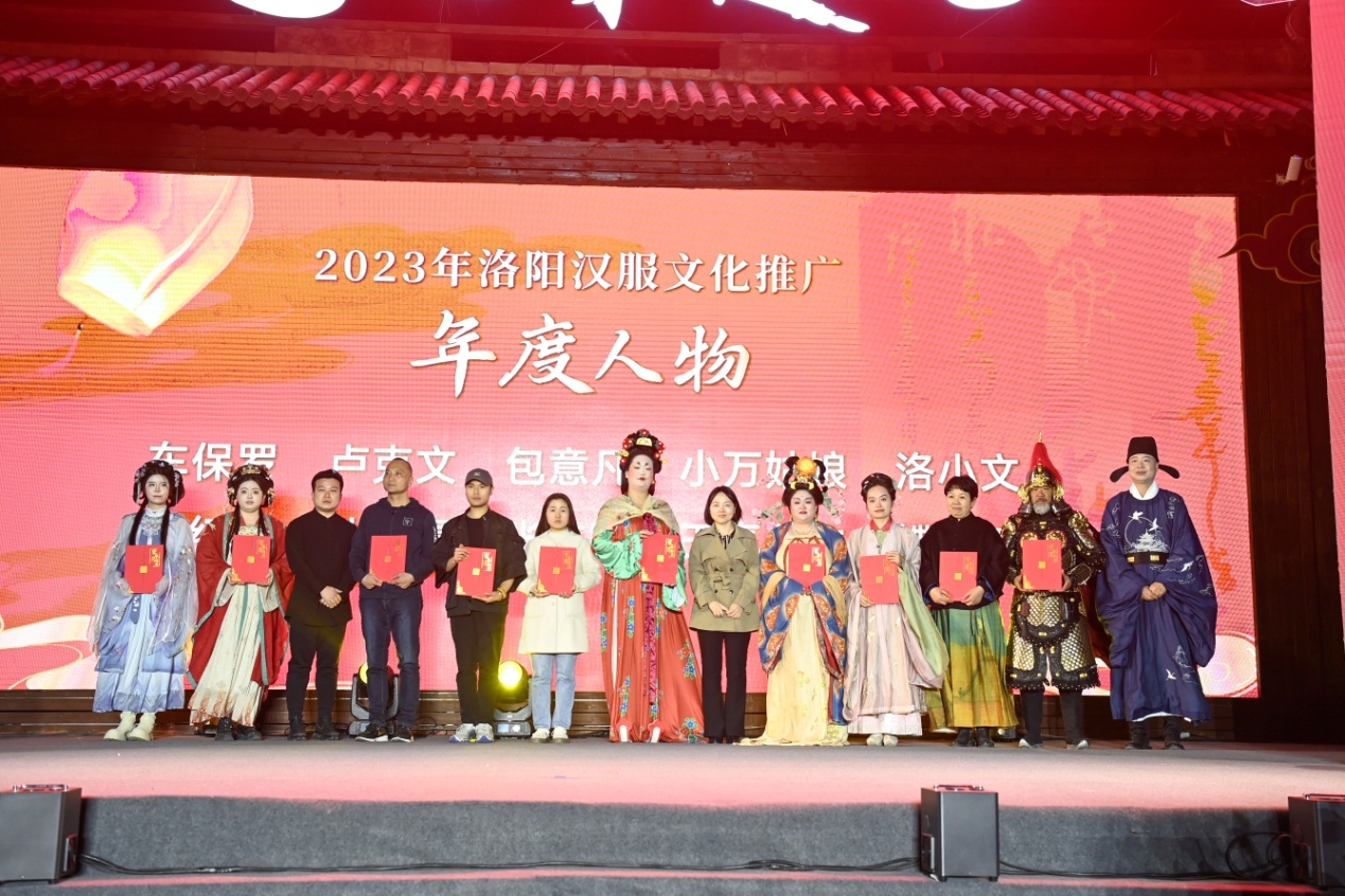 活动现场还为2023洛阳汉服推广年度人物颁奖,发布了数字AI文创产品,评选出洛阳首届十佳汉服店、十佳妆造师。