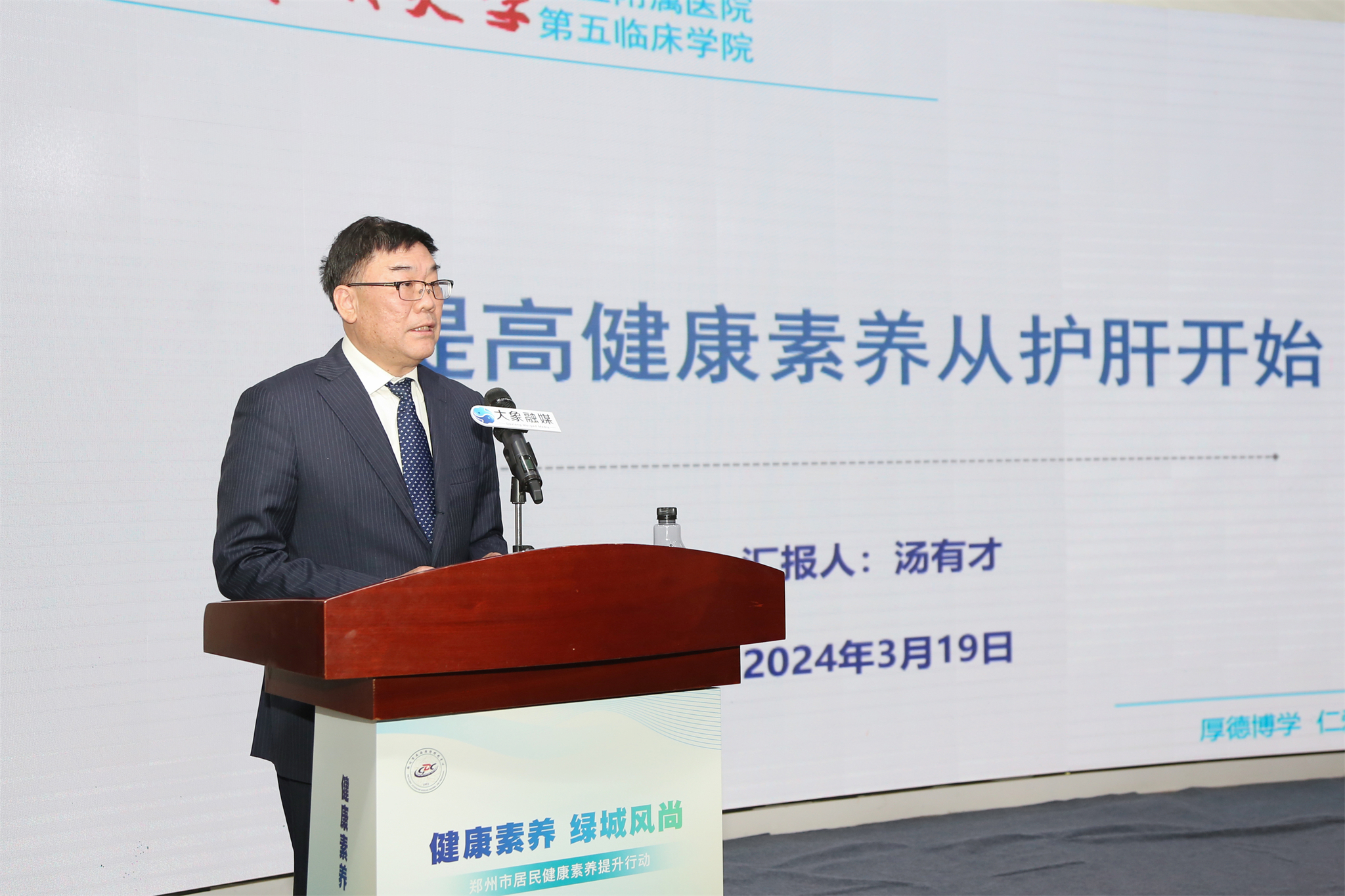 豫见春天,健康先行,美好“郑”在发生。3月19日,“健康素养 绿城风尚”2024郑州市居民健康素养提升行动启动仪式暨首期公益大讲堂在大象融媒新闻发布厅举行。