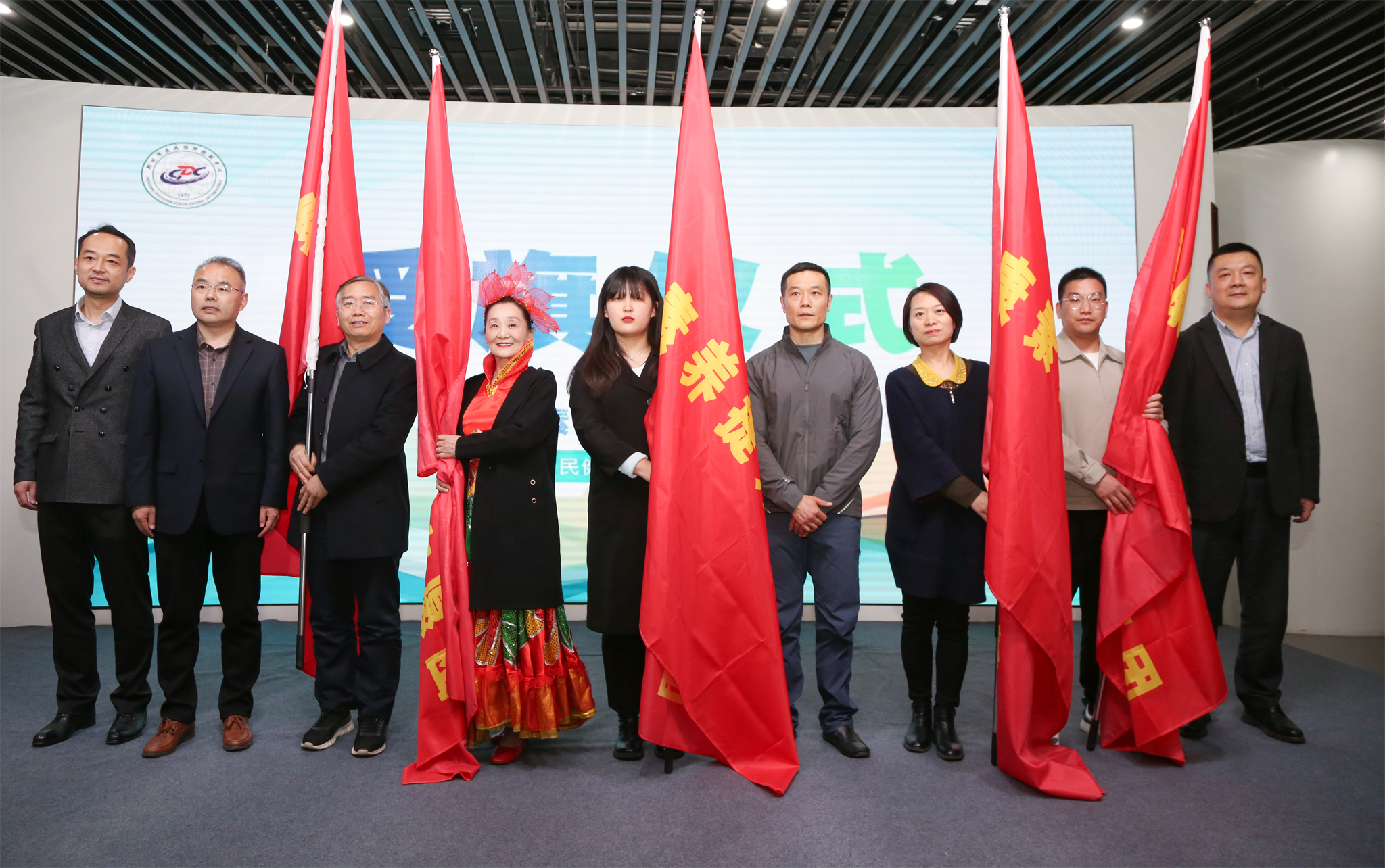仪式现场,活动主办方向科普专家团队、志愿者团队代表授旗,他们将和主办方一起,深入村镇、社区、企业、学校开展居民健康素养提升主题科普宣传活动。