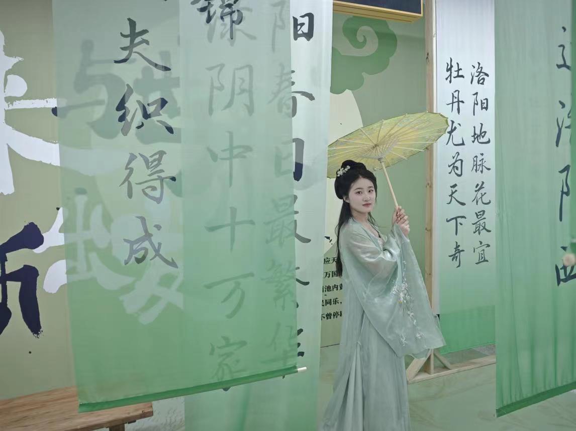 【文博园站】:结合洛阳牡丹文化节氛围,打造了文化打卡角。大幅的中国风画作,颜色鲜艳、层次分明,营造出一种温馨而艺术的氛围。在这里,您可以感受到传统文化的魅力与现代设计的完美融合。