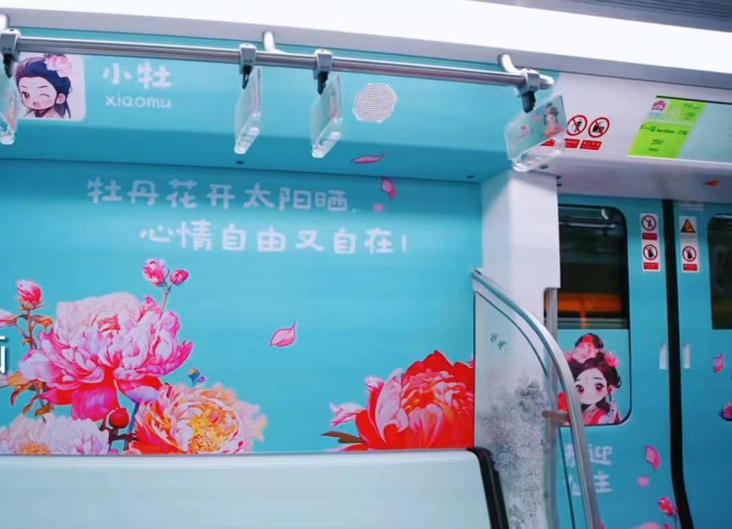牡丹文化节期间,洛阳地铁精心策划,于1、2号线各打造一列牡丹专列,并推出可爱的专列IP人物--“小牡”与“小丹”,它们将陪伴您一路出行。车厢内部,细腻的漫画风格与花瓣、枝桠等小元素巧妙融合,营造出一种温暖而治愈的氛围。更有许多有趣小文案,为旅程增添无限乐趣,等您来发现!