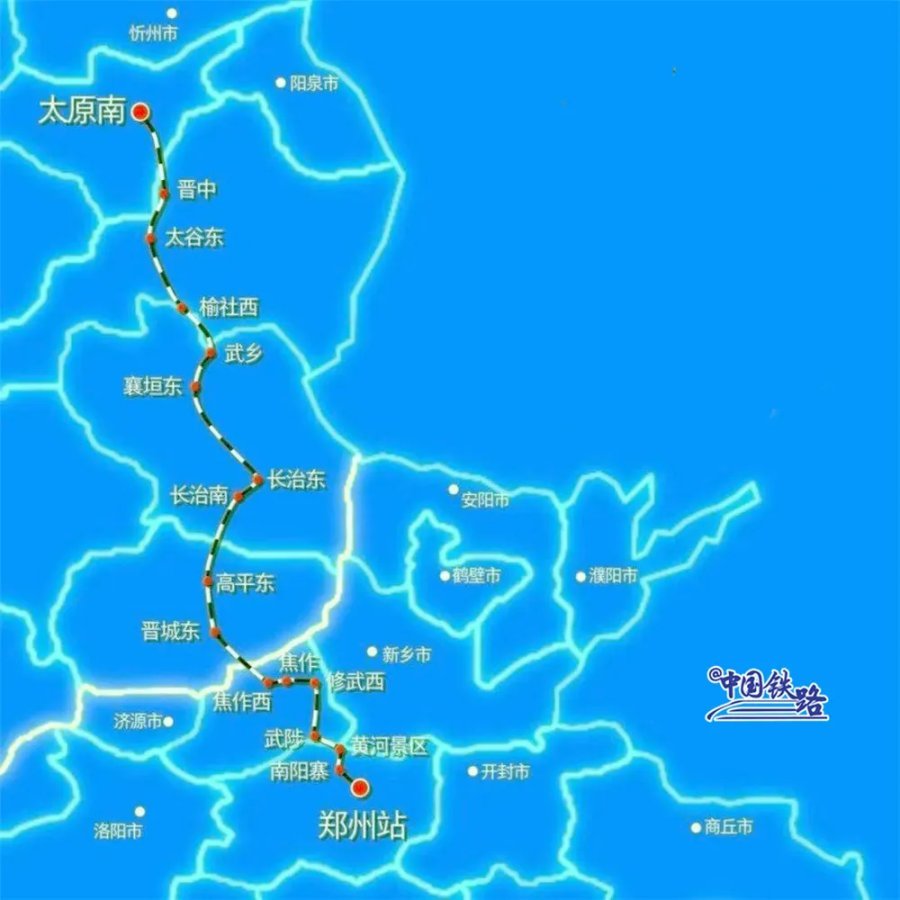 郑太高铁设郑州、南阳寨、黄河景区、武陟、修武西、焦作、焦作西、晋城东、高平东、长治南、长治东、襄垣东、武乡、榆社西、太谷东、晋中、太原南17座车站。
