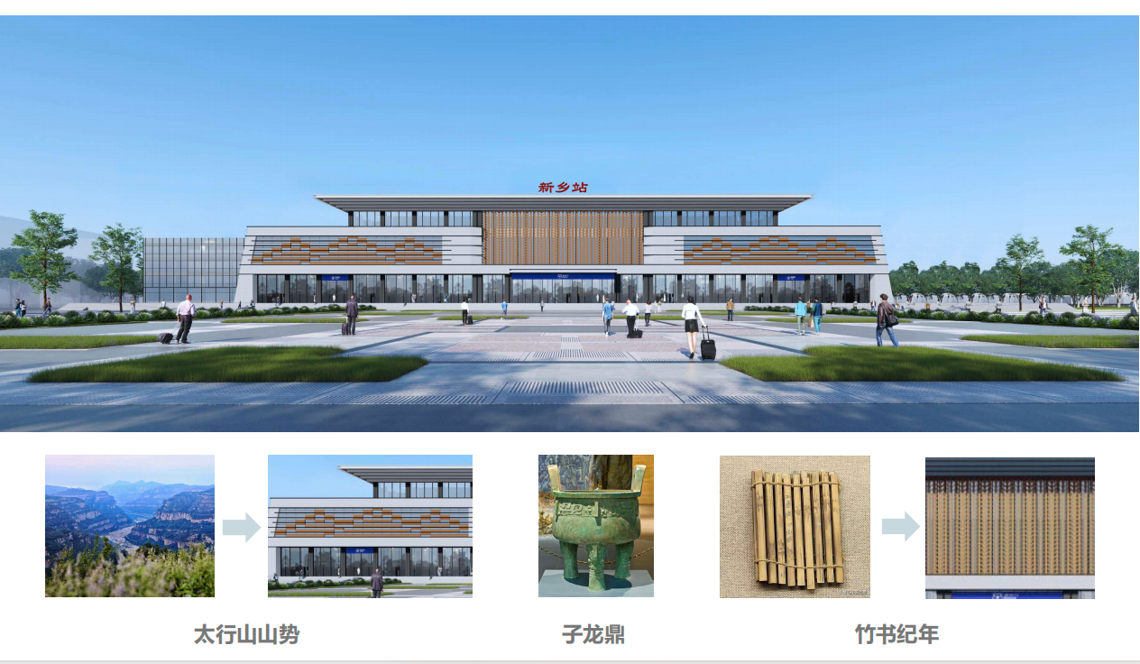 新乡站客运提质升级改造工程中,新站房融入新乡本地的太行山图、子龙鼎和竹书纪年等传统文化元素,兼顾美观实用的设计理念。站房候车区将设置综合服务中心、软席候车区、重点旅客服务区、军人候车区、儿童游乐区、商务旅客候车区和母婴室等,将增设旅客集散厅、应急疏散厅等功能区域,并在现有2部扶梯的基础上,增设直梯,新窗口、新服务、新形象提升旅客美好出行体验。