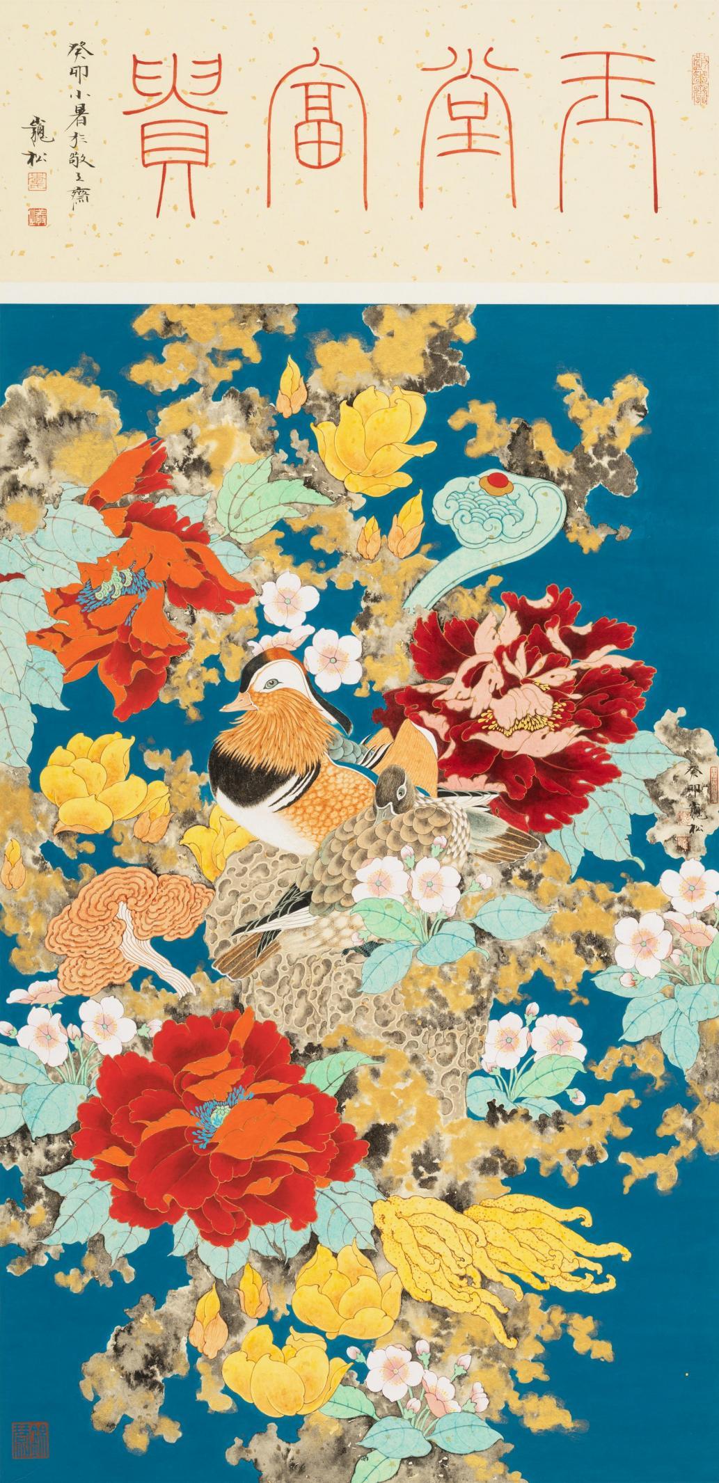 《金墨玉堂富贵(小)》中,锦灰堆、八破图等中国画传统表现手法的运用很有寓意和韵味,画家更是吸收了西方解构主义的表现形式,强调打碎、叠加、重组,是画家对传统模式的一次勇敢突破。
