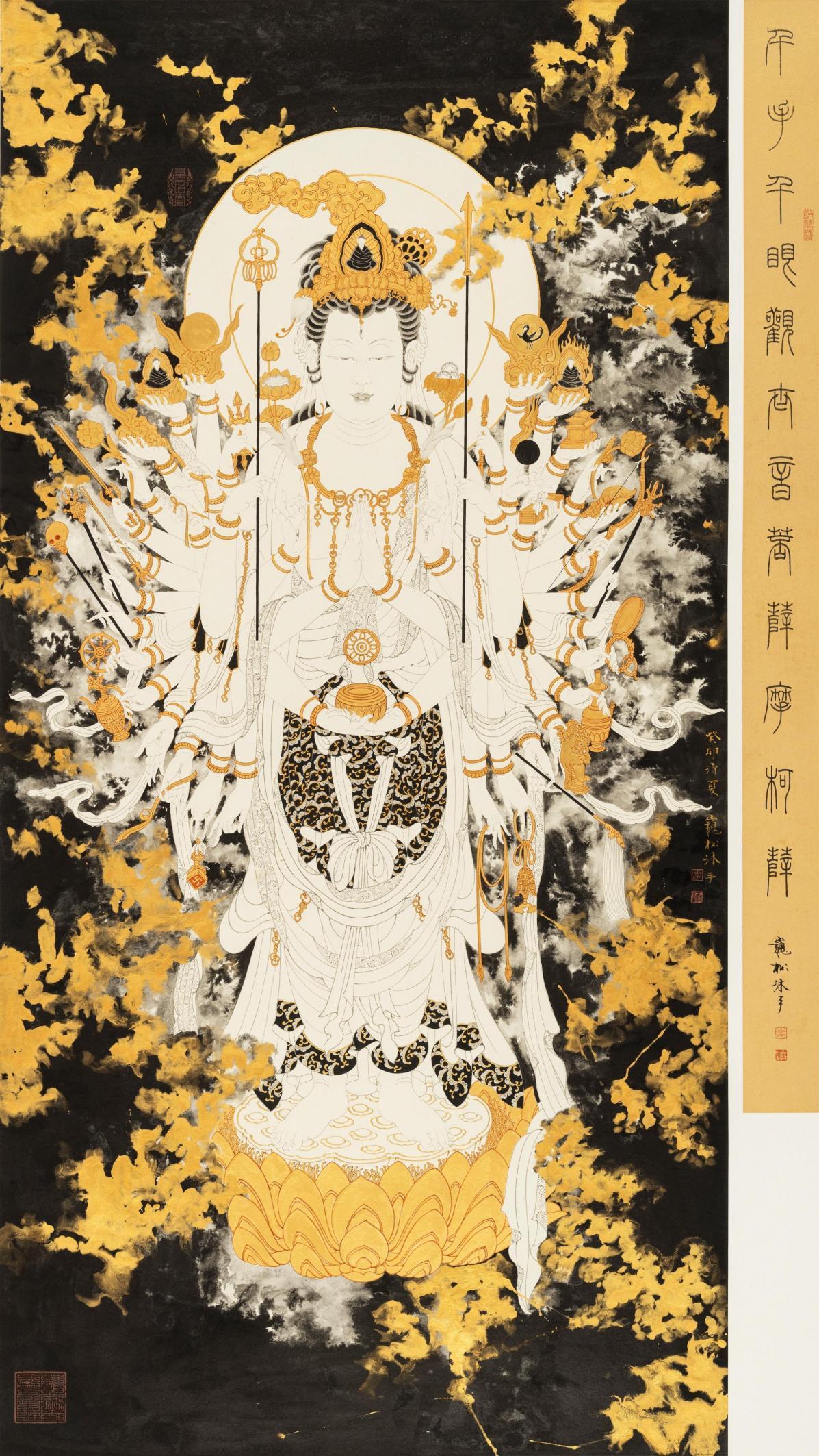 《金墨千手千眼观世音菩萨》是画家典型的绘画风格“金墨佛释绘画”系列,也是他最具个人面目的风格之一,被业界冠以“李家样”之称。