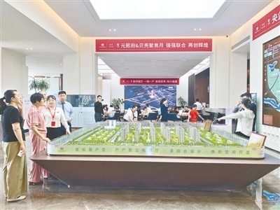 5月19日,记者刚走进位于滨河国际新城片区中建·元熙府售楼部,便被眼前火热的销售场景所吸引,大厅沙盘模型区前围满了络绎不绝的群众,还有工作人员在案场开启线上直播讲解。