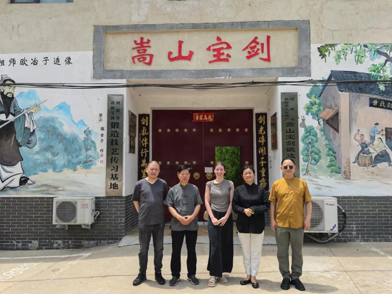 5月30日,联合国世界非物质文化遗产保护基金会一行在郑州市非遗保护中心李桂玲主任的带领下,一同走进嵩山宝剑锻造技艺传习基地考察调研非遗保护传承工作。