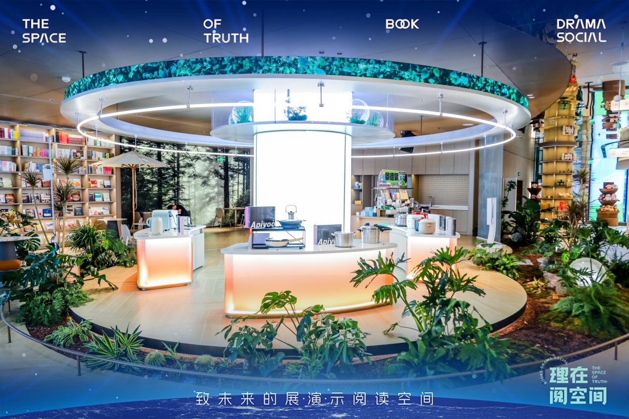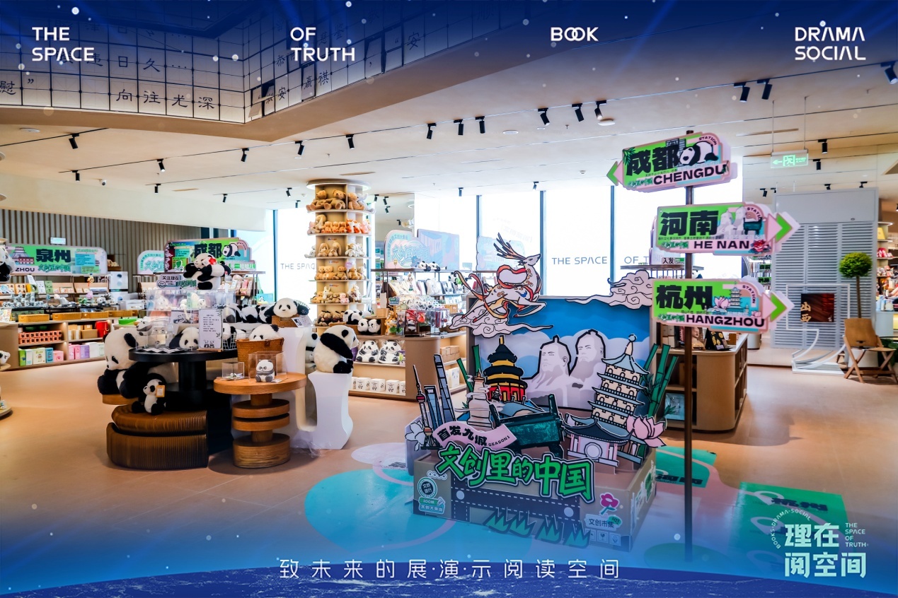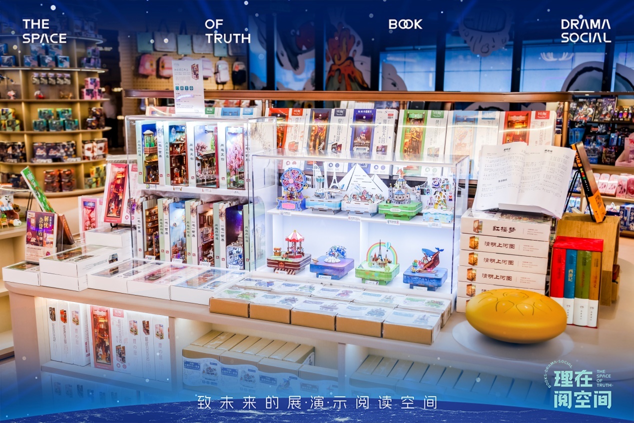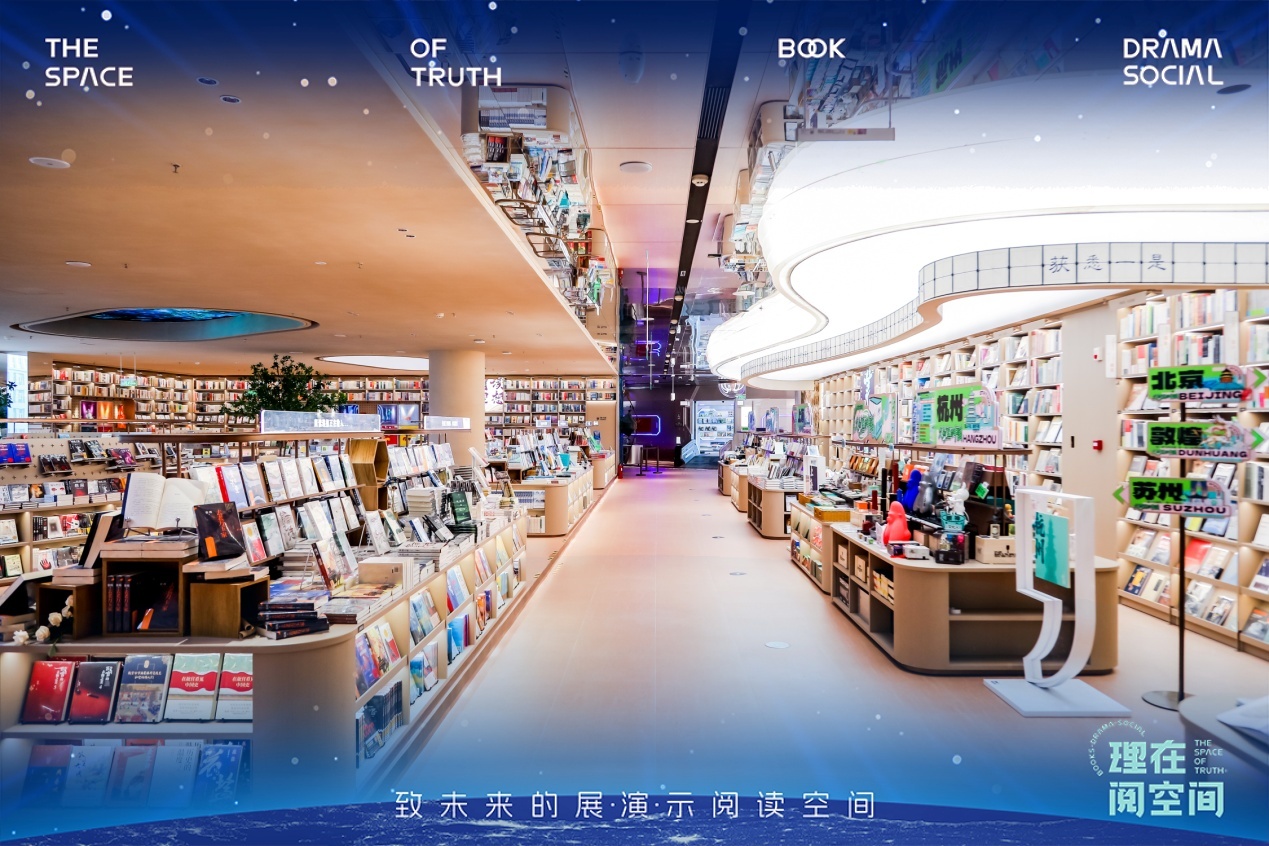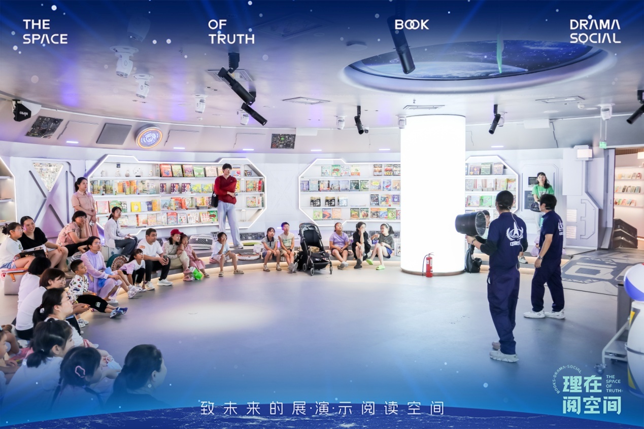 李坪渌还为读者现场解锁了这一文化体验空间的5种“打开方式”:以“沉浸阅读”营造深度文化氛围,既重视新书推介,又注重闲置书流转,让读者交换新知;以“演书计划”形成空间体验差异,开河剧场、有巢剧场、喂泥剧场、给光剧场各具内涵,为读者奉献品质好剧,在“书店+剧”时代中疗愈精神、望见未来;以“文创旅程”拉开文化资源纵深,创新策展“文创里的中国”,首发10座城市,未来将巡展100城,让理在成为永不落幕的文创市集、文化现场;以亲子为主体的学习场景,课本剧、童话剧、魔术剧,科学课、艺术课、手工课等特色内容,将充分赋能青少年成长。以无处不在的算力,多维感官交互,冲破次元壁垒,增强空间的未来质地,书店也可以不止是书店,而是可听、可演、可游、可交互的全新阅读空间。