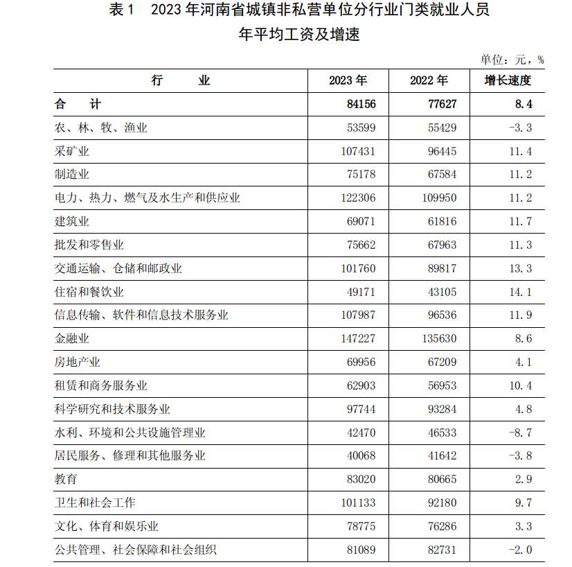 7月5日,河南省统计局发布2023年河南省城镇单位就业人员年平均工资情况。