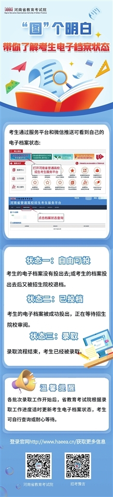 “图”个明白,带你了解考生电子档案状态 图片来源于河南省教育考试院