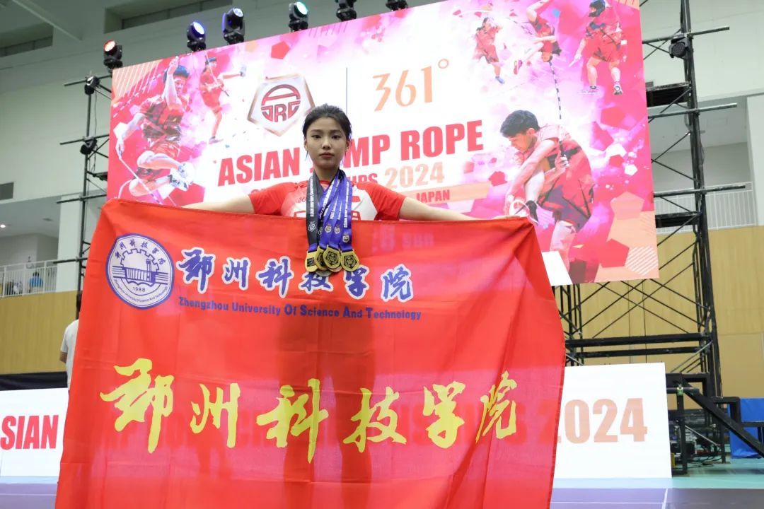 这位来自郑州科技学院体育学院的大学生,在刚刚结束的2024年亚洲跳绳锦标赛中屡创佳绩,在3分钟单摇跳比赛中,以1072次勇夺冠军。在团体项目赛中,2×30秒双摇接力赛获得第一名,并打破世界纪录。