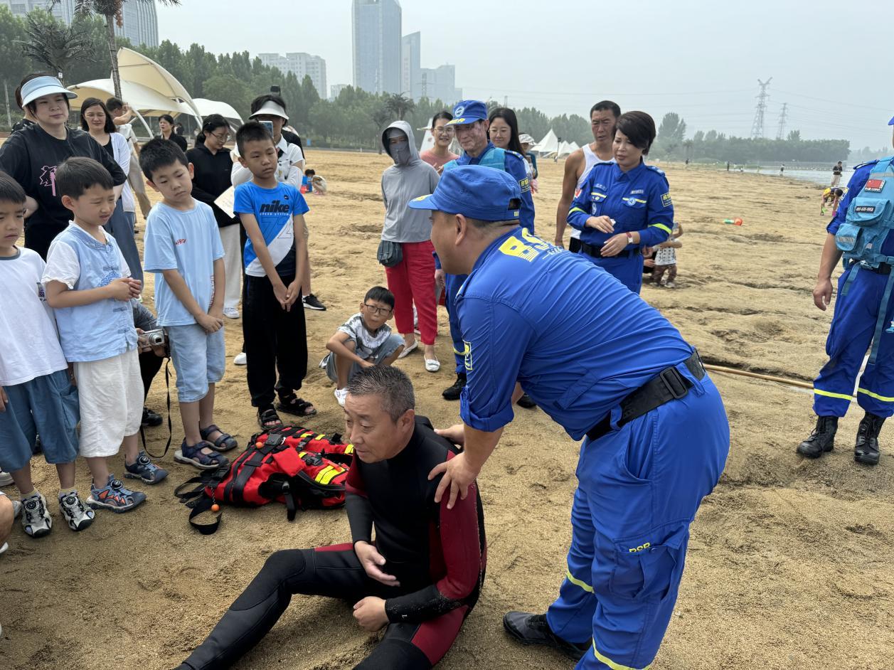 为了让孩子们安全亲水,当地还人工打造了一个开放性的欢乐沙滩,面积3.45万平方米,可以容纳4000-6000人,增设4名安全员,1名瞭望人员,增加10处救生设施。早8点到晚10点防溺办会安排专人定时沿河巡逻,加上近2万名联盟成员不定时多点观察,孩子们的暑期安全有了双保险。