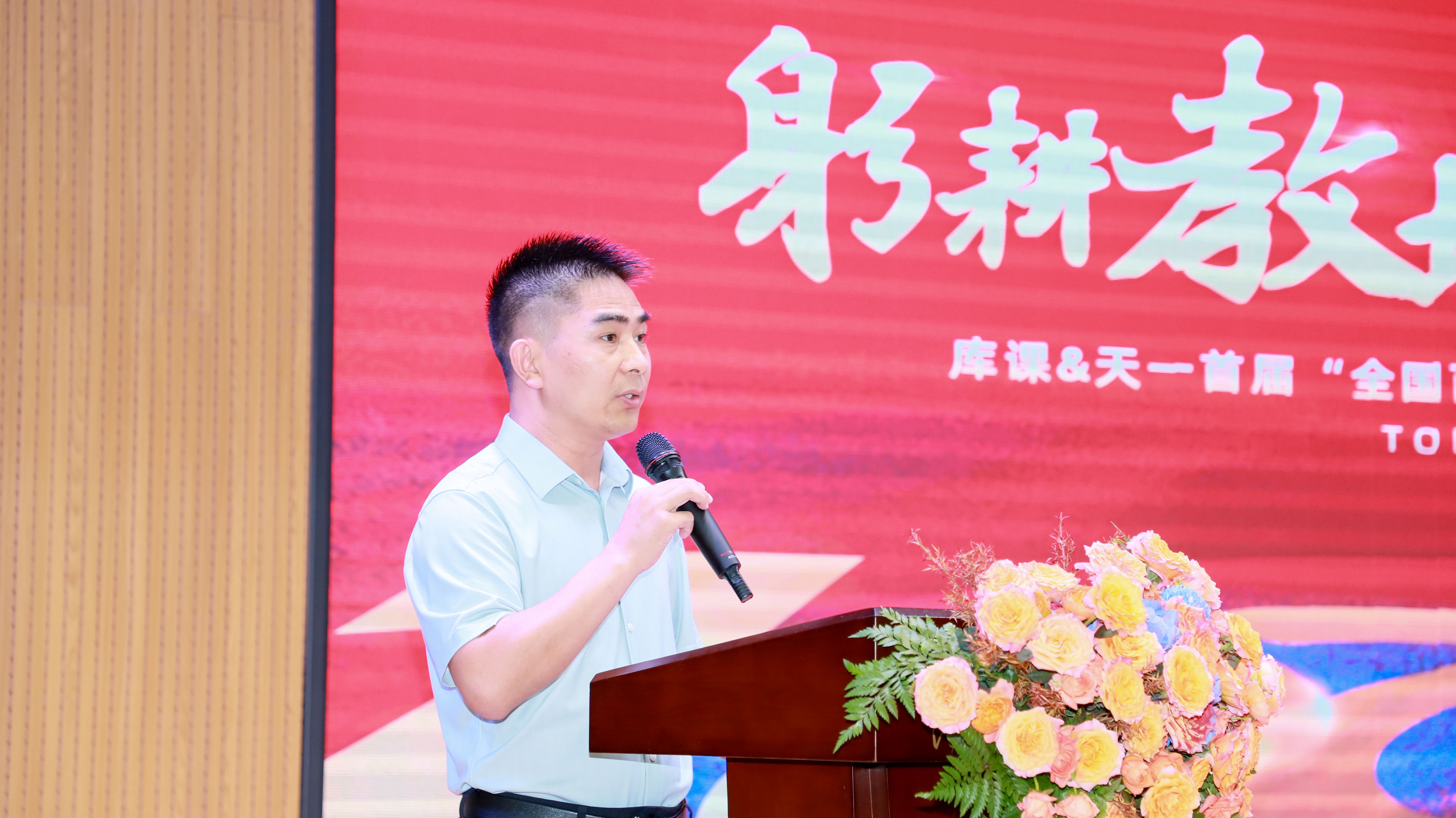 库课科技副总裁段志伟发表致辞,激励全体教育工作者要坚定教书育人、培根铸魂的初心;郑州市教育局关工委关爱专家团文化传承分团团长陈绍营在发言中肯定了库课、天一在教育事业中做出的贡献;库课科技副总裁刘俊霞、副总裁刘林也为获奖的百位老师们送上了祝福。