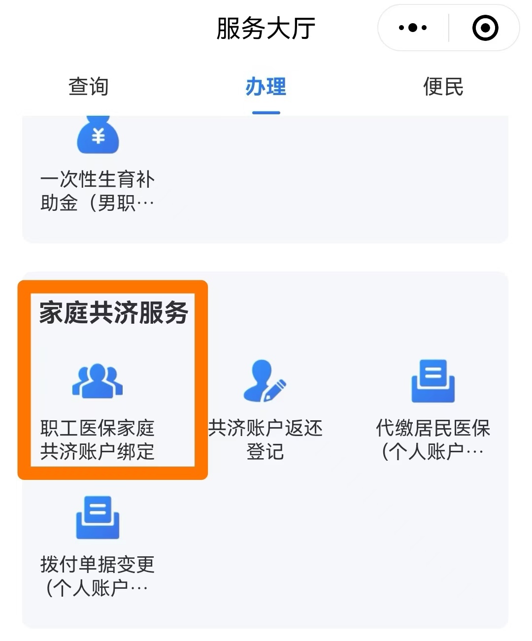 目前,医保个人账户家庭共济有3种途径可进行绑定,参保人员可任选一种: