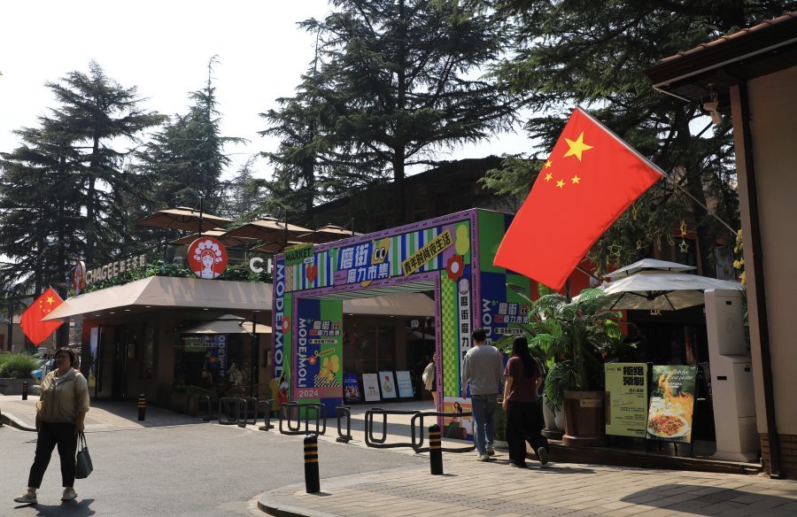 郑州磨街国庆节的氛围满满。