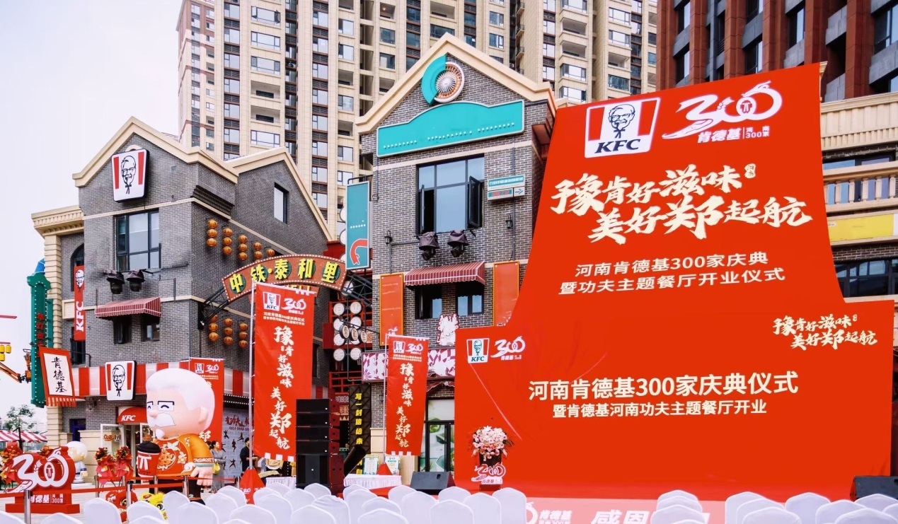 2024年10月16日,河南肯德基第 300 家餐厅揭幕仪式在郑州中铁泰和里餐厅盛大举办,这不仅是庆祝肯德基在河南走过 24 载岁月的重要时刻,更是见证其在河南餐厅数量突破 300 家的里程碑。怀着对“功夫郑州”城市 IP 的崇高敬意以及对文旅消费新场景融合创新的满满期待,河南肯德基将这具有重大意义的第 300 家店精心选址于河南首个沉浸式文商旅经济综合体“中铁泰和里”,并携手郑州市文化广电和旅游局升级打造为“功夫主题餐厅”。在这里,“功夫郑州”的深厚文化底蕴与河南肯德基的蓬勃活力激情碰撞,向肯德基全国消费者发出诚挚邀请:有功夫来郑州!