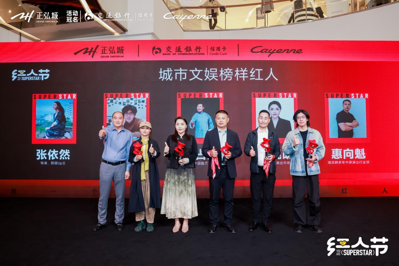 荣获城市文娱榜样红人的分别是:才华横溢的导演和民宿up主张依然;传承社小剧场主理人周飞;国家一级演员、高级民间曲艺师鲁占盈;河南艺术中心大剧院营销负责人路晓明;负责过河南省第十三届运动会、第29届中国金鸡百花电影节等多场大型演出活动的惠向魁。