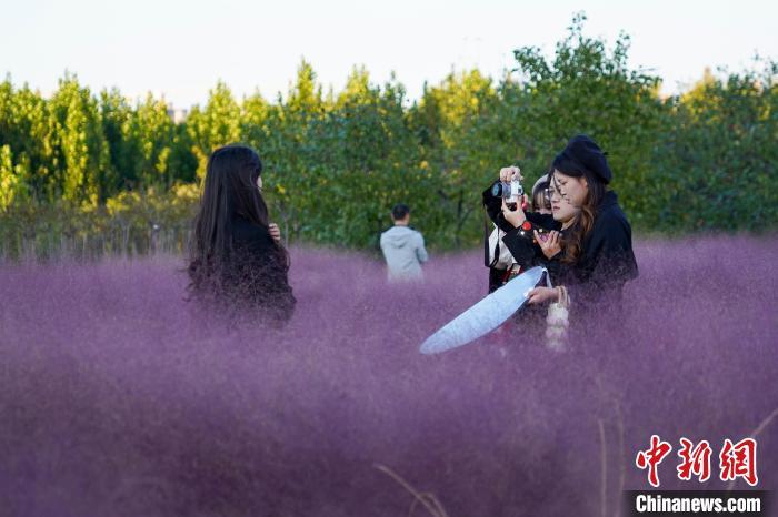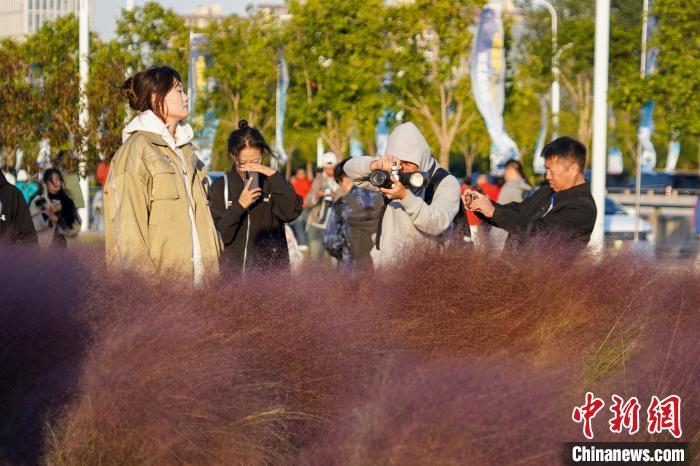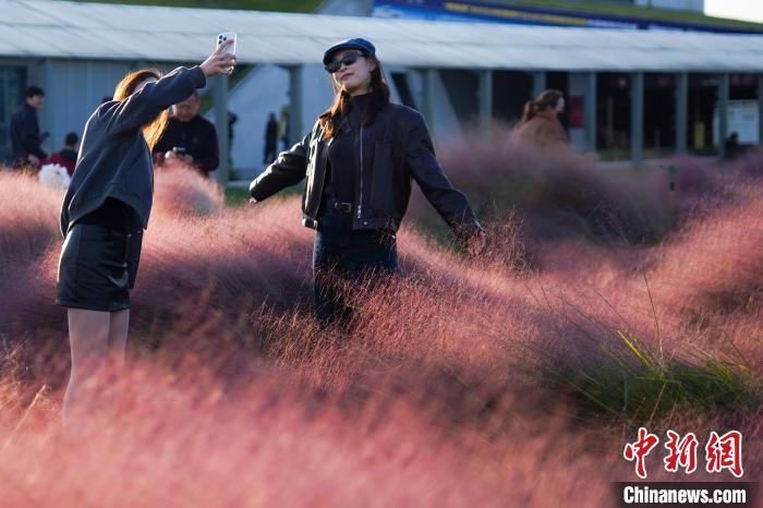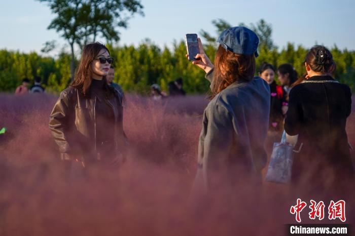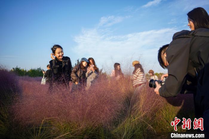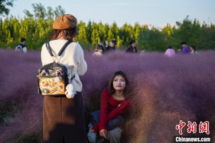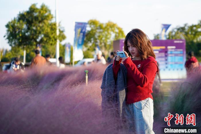 图为进入最佳观赏季的粉黛乱子草吸引市民驻足拍摄。中新社记者 李超庆 摄