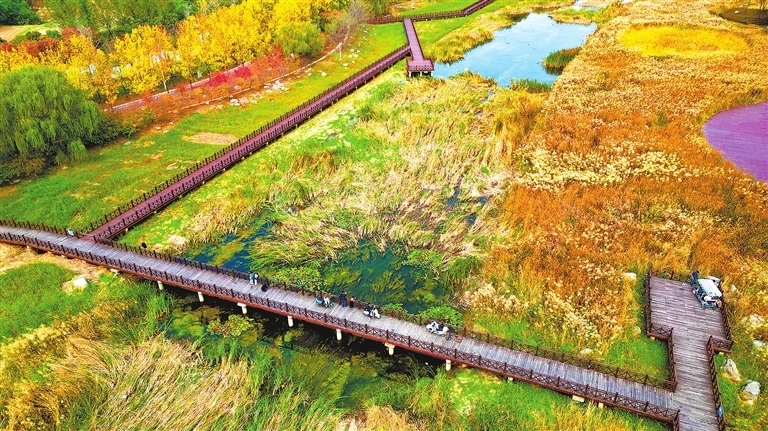 10月30日,郑州贾鲁河公园芦苇荡漾,秋意盎然,吸引众多游客前来。随着贾鲁河综合治理工程完工,贾鲁河全线已实现堤防达标、堤线闭合,河道防洪能力大幅提升。目前,贾鲁河已成为一条贯穿郑州、开封、许昌、周口4个省辖市水绿相间的生态廊道。(记者 聂冬晗 摄)