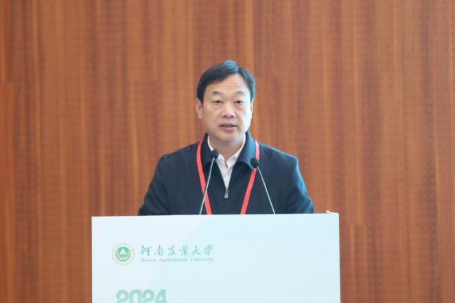 河南省委农办主任,河南省农业农村厅党委书记、厅长孙巍峰致辞孙巍峰在讲话中指出,河南是我国小麦第一生产大省,在保证我国“口粮绝对安全”中发挥了极其重要的战略地位。河南在农业发展中始终将科技创新摆在重要位置,全省农业科技进步贡献率达到65.9%,粮食主导技术到位率达到95%以上,主要农作物良种覆盖率97%以上,主要农作物耕种收综合机械化水平达到88.1%,均居全国前列。河南省种业振兴成效显著,小麦、花生育种水平国际领先、供种能力全国第一,中原农谷建设成势见效,58个省级以上科研创新平台、74家种业企业已入驻农谷,成功举办2023中原农谷国际种业大会,加快打造国家级、国际化农业创新高地,中原农谷、中原医学科学城、中原科技城一起构建形成了全省“三足鼎立”的科技创新大格局。在粮食安全方面,积极对接国家新一轮千亿斤粮食产能提升行动,强化藏粮于地、藏粮于技的物质基础和机制保障。他强调,要以此次会议为契机,认真学习借鉴国内外的好经验、好做法,努力把河南小麦生产和农业高质量发展工作提高到一个新水平,也真诚期望大家为河南农业发展多提意见建议,多建真言良策,推动河南加快建设农业强省,在保障国家粮食安全上展现新担当新作为。