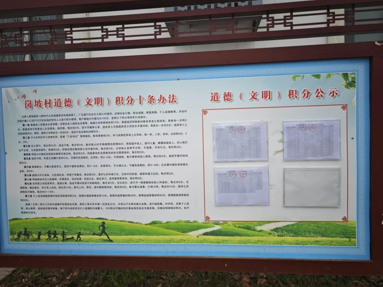 走进钜桥镇岗坡村的党群文化广场,醒目的公示栏里张贴着道德(文明)积分排行榜与村内新修订完善的村规民约,移风易俗、邻里和谐、尊老爱幼等条款随即映入眼帘。