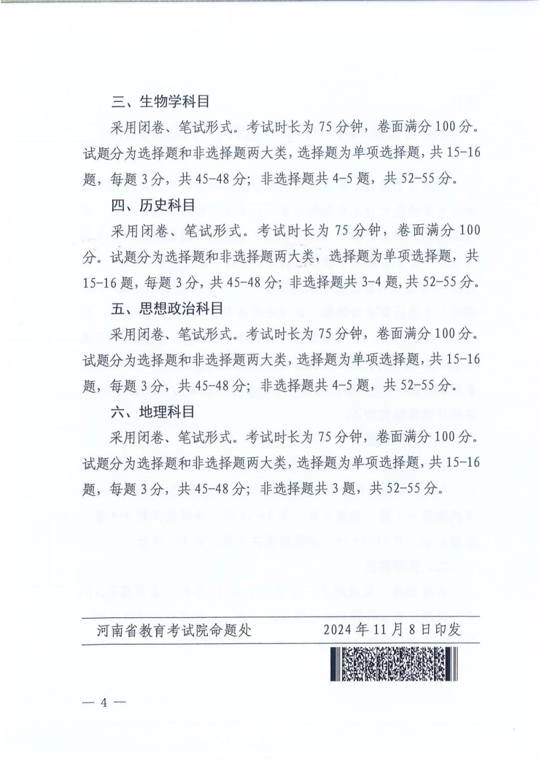 2025年,河南省将实行新高考,届时,思想政治、地理、化学、生物学4个学科将以等级分计入高考总成绩。根据河南省《深化普通高等学校考试招生综合改革实施方案》,2025年高考,考生(文化)总成绩由全国统一高考的语文、数学、外语3个科目成绩和考生选择的3门普通高中学业水平选择考科目成绩组成,满分为750分。