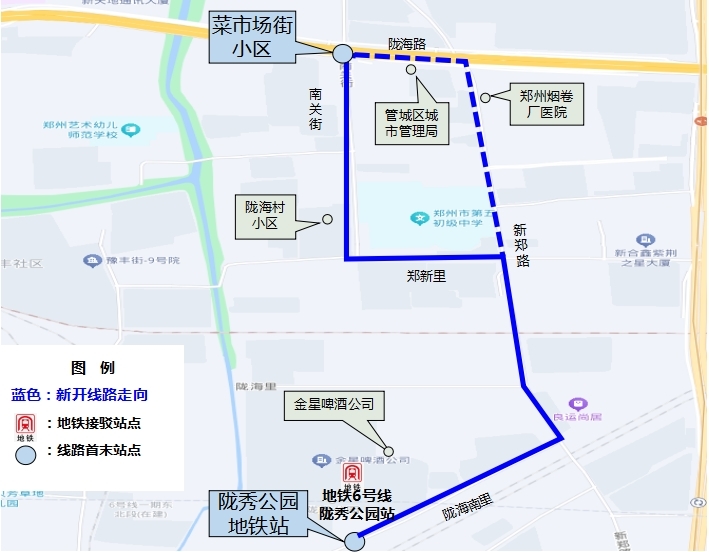 途经道路:陇海南里、新郑路、郑新里、南关街、陇海路、新郑路、陇海南里。