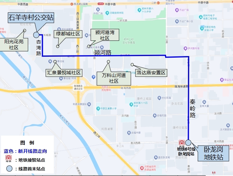 途经道路:长城路、杏湾路、颍河路、秦岭路。