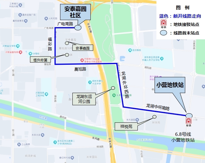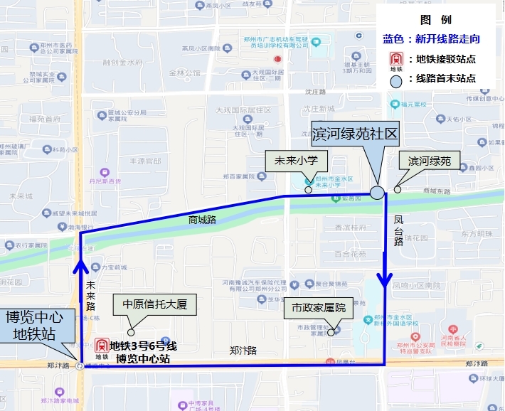 途经道路:凤台路、郑汴路、未来路、商城路。