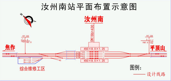根据河南铁建投集团发布的车站设计图可以看出,全线新设沁阳西、济源东、孟津北、汝阳东、汝州南5座车站,改建洛阳龙门站、焦作西站2座车站,预留伊川西站1座车站,既有洛阳动车存车场扩建为动车所。