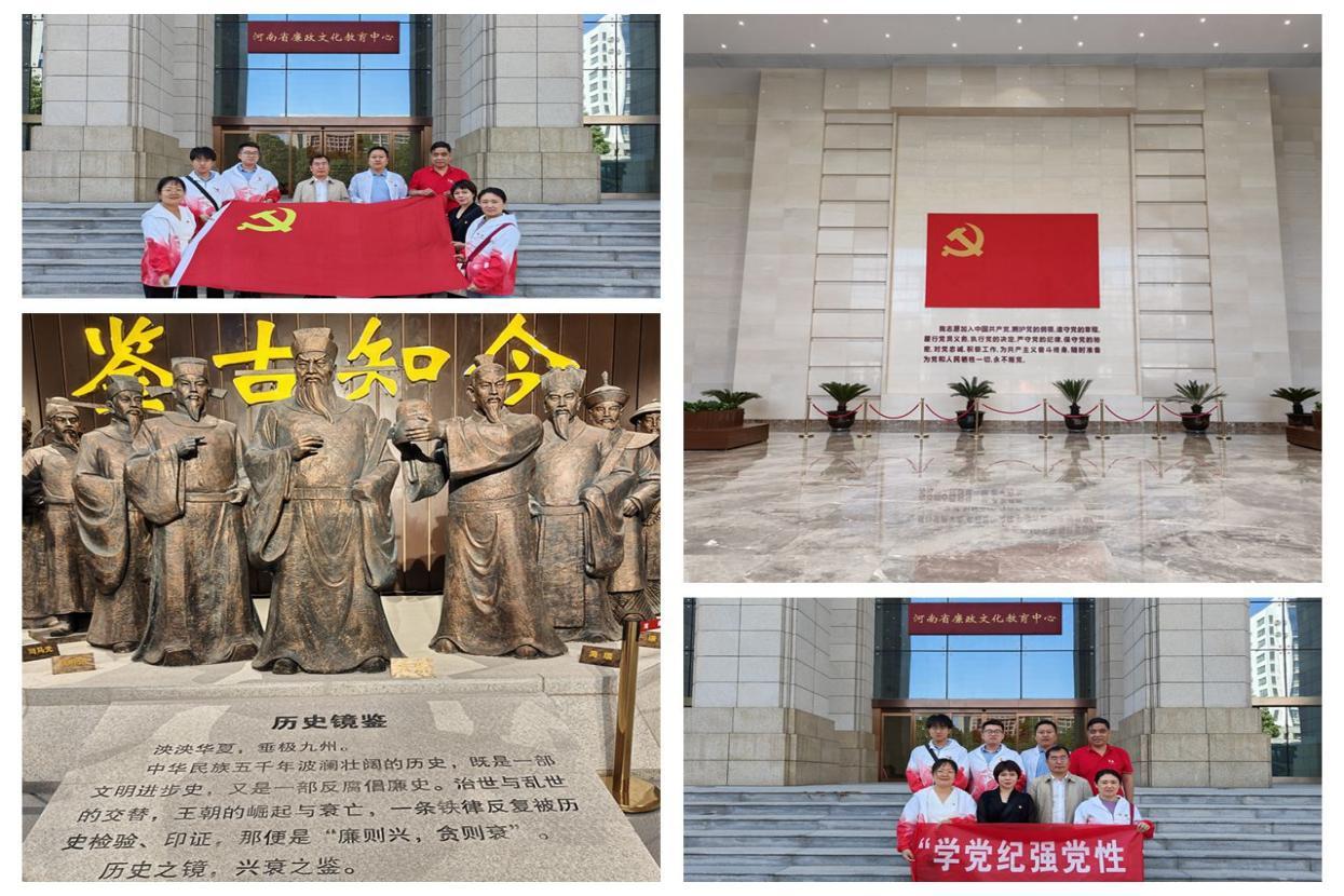 在省廉政文化教育中心一楼大厅,党员同志们面对党旗重温入党誓词;在古代廉政文化展、党风廉政建设展、新时代河南全面从严治党成果展等展厅,同志们认真观看展览、听取讲解,以史为鉴、以案明纪,从党风廉政建设和反腐败斗争百年历史中汲取了智慧和力量。