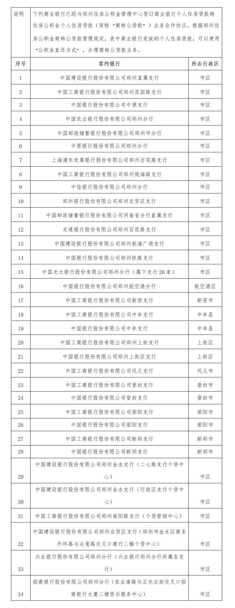 12月12日,郑州住房公积金管理中心公布34家商转公贷款签约银行名单。