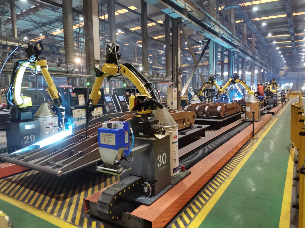1月22日,在位于河南省平顶山市郏县经济技术开发区的平顶山平煤机煤矿机械装备有限公司装配车间里,工人师傅正在紧锣密鼓地认真设计制造等压立柱,赶制海外出口订单产品;在结构件分厂焊接车间,100台焊接机器人正在焊接,车间内火花四溅。