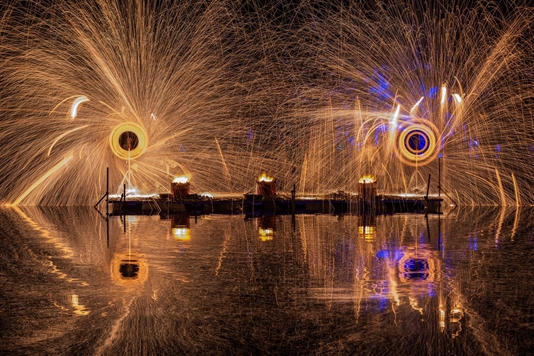 然而,看似刹那绝美的铁花,想要打得圆满并非易事。先打石头后打沙,清水能打一丈八,才能开始打铁花。铁水温度高达1600摄氏度,打的时候人要光着膀子,只有把铁水打高打散,落下来的铁花跟水雾一样,才能不那么烫。“打铁花确实具有一定的危险性,但看到那些真的热爱打铁花这门手艺的年轻人,我感到非常开心。”杨建军说。