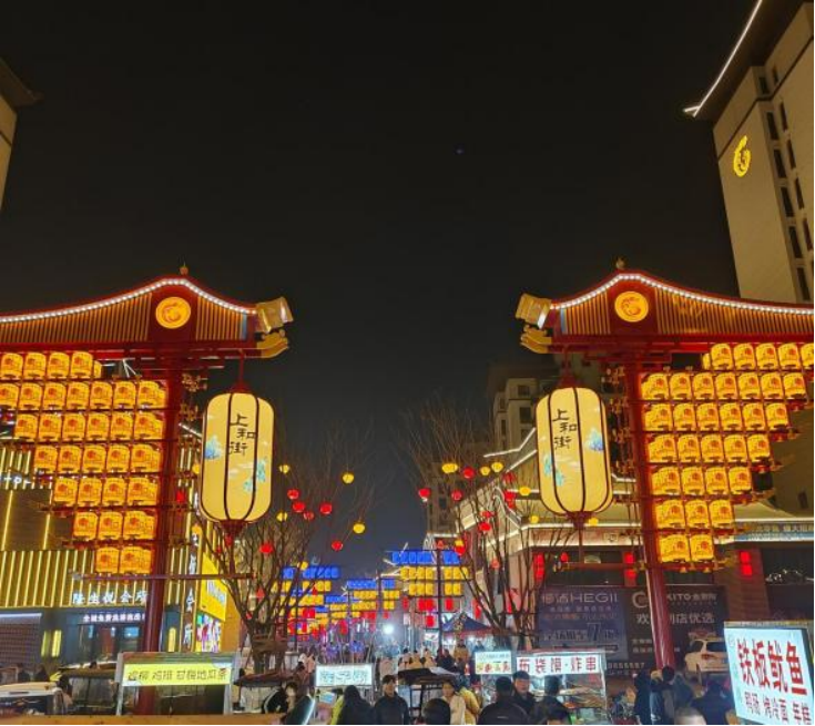 走进商丘古城中山大街,仿佛走进了一幅流动的画卷——霓虹招牌闪烁,各色美食飘香,风格迥异的商品摊位,琳琅满目的非遗文创,人们或赏景游玩、或逛街购物、或品尝美食,无不沉浸在“古城风、现代味、人间色、烟火气”这一人文历史与现代经济碰撞带来的别致体验中。