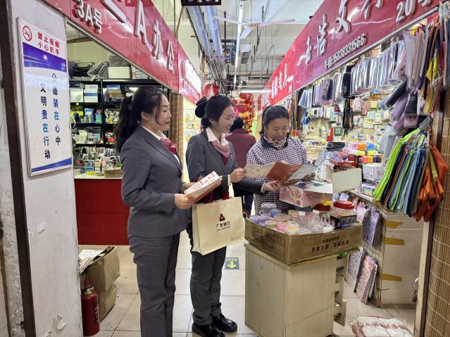 为提升金融消费者维护自身合法权益的意识和能力,广发银行郑州嵩山路支行于2025年3月3日组织全体员工走进友爱路便民服务中心开展以"金融消保在身边,便民服务防风险"为主题的金融消费者权益保护教育宣传活动,向商圈商户普及金融知识和防诈宣传。