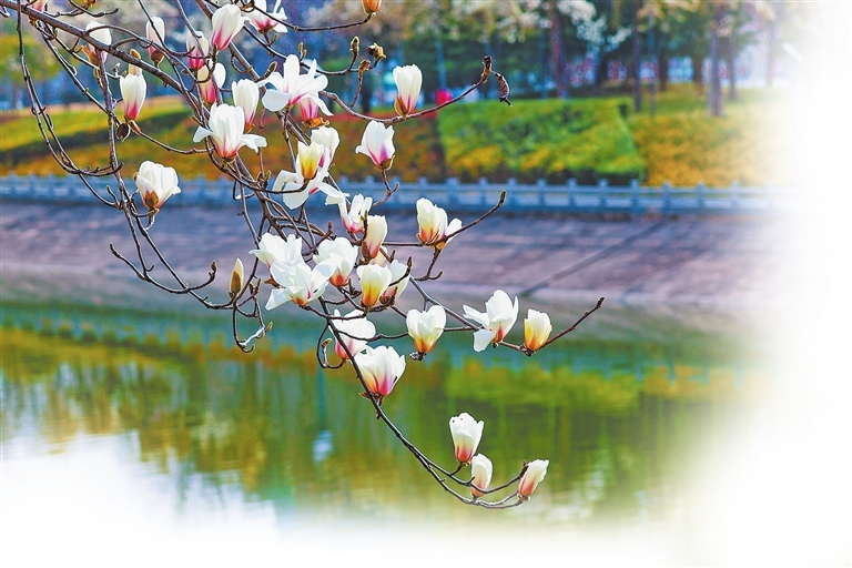 3月12日,郑州市郑东新区七里河沿岸的玉兰花迎来盛花期,绽放的花朵如云似雪。记者 聂冬晗 摄