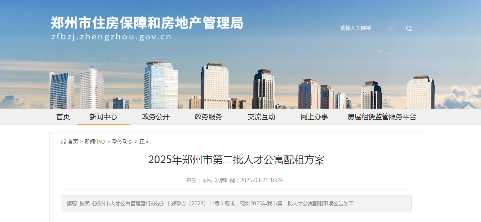 定于2025年3月24日08:00将房源上线“郑州市保障性租赁住房(人才公寓)系统”进行配租。