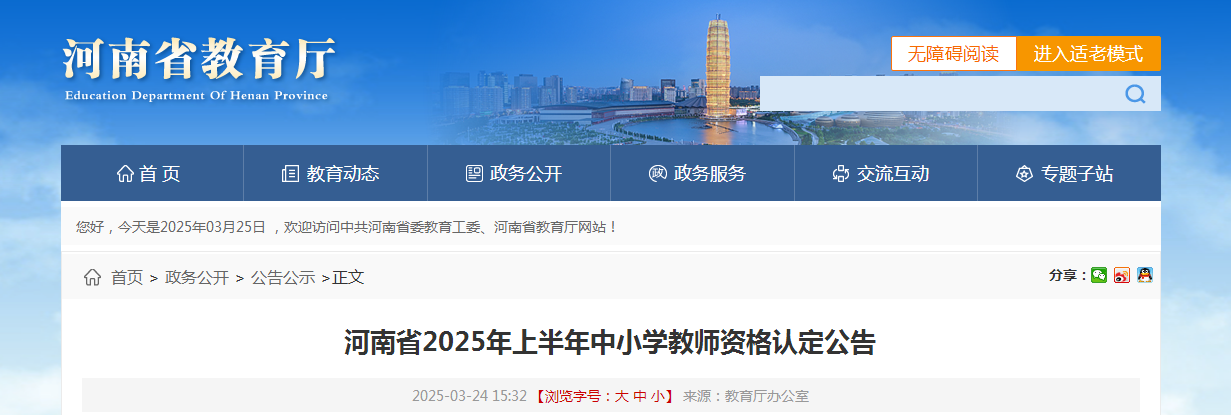 河南省教育厅昨日(3月24日)发布河南省2025年上半年中小学(含幼儿园)教师资格认定公告,认定对象条件、时间流程、注意事项等相关事宜敲定。