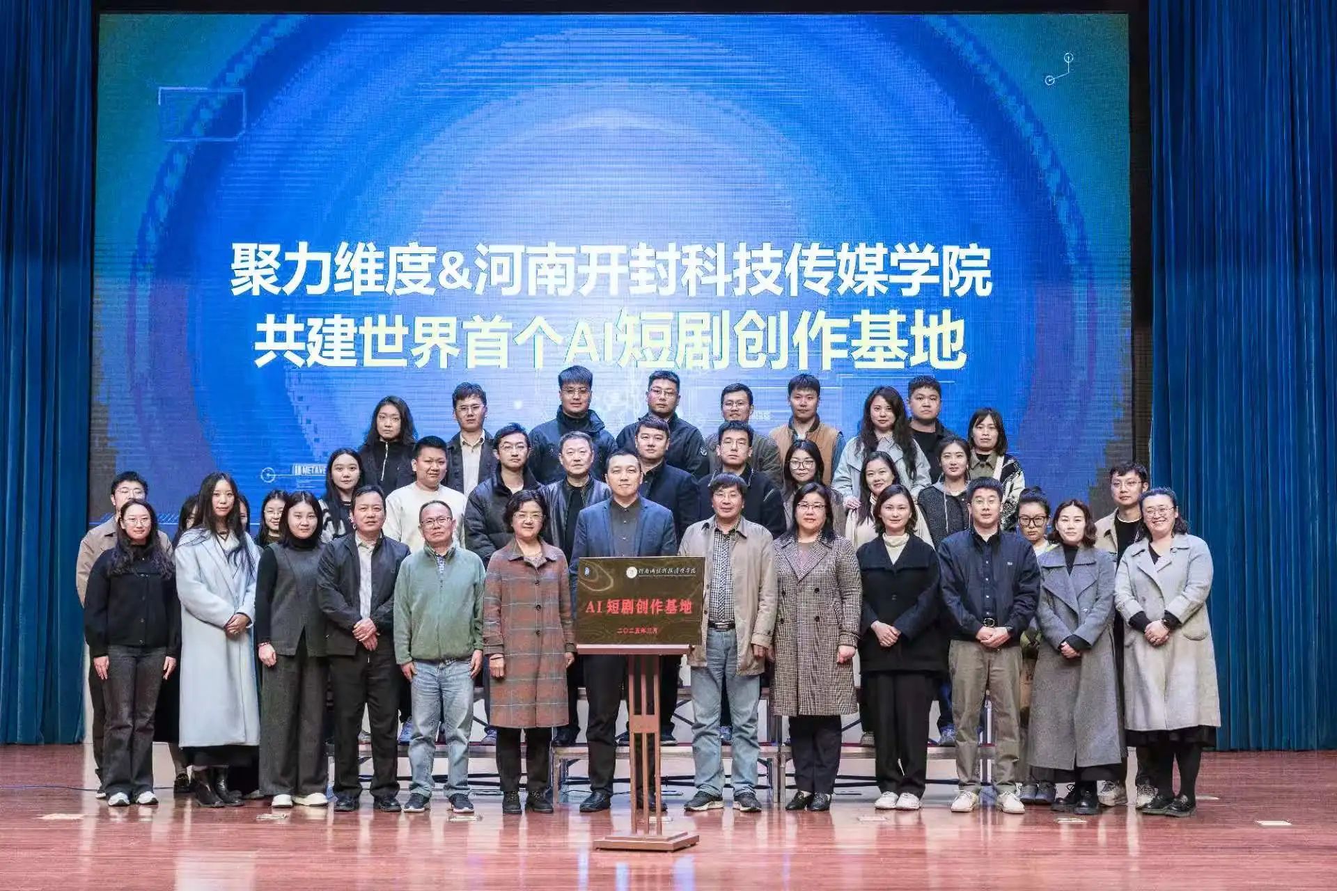 3月27日下午,河南开封科技传媒学院智能影像现代产业学院与北京聚力维度科技有限公司,正式举行AI短剧创作基地揭牌仪式,副校长王天仕主持,学校主要领导共同见证这一重要时刻。