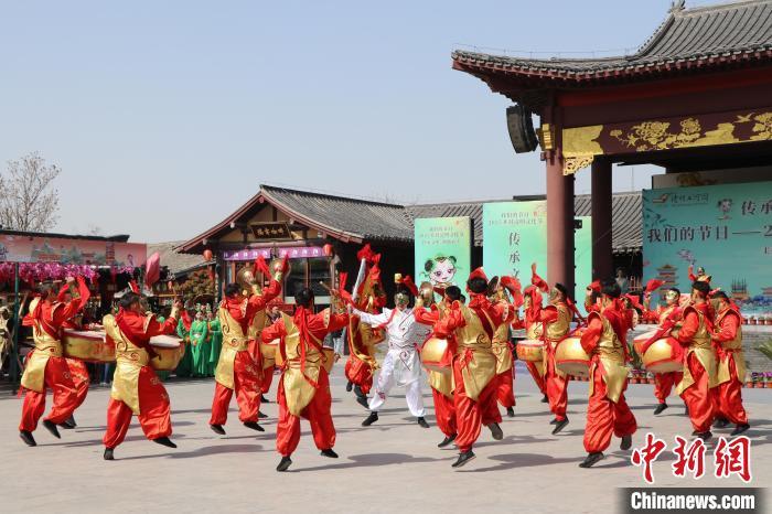 活动当日,开封清明上河园里春和景明,来自全国各地的游客到此踏青赏春。在民俗表演环节,开封盘鼓率先拉开序幕,民间艺人们跟着鼓点起舞,吸引众多游客驻足拍照。