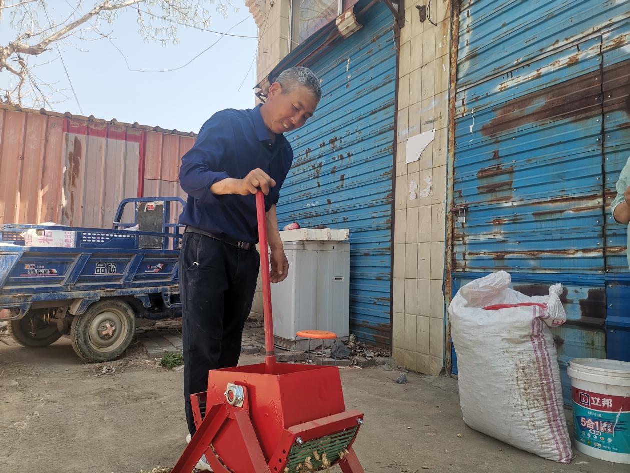 2018年,崔新杰在村里承包了100亩(1亩≈666.67平方米)土地,种植小麦、玉米和花生。他发现传统的播种方式劳动强度大、花费时间多,就萌生了发明一台多功能花生播种机的念头。