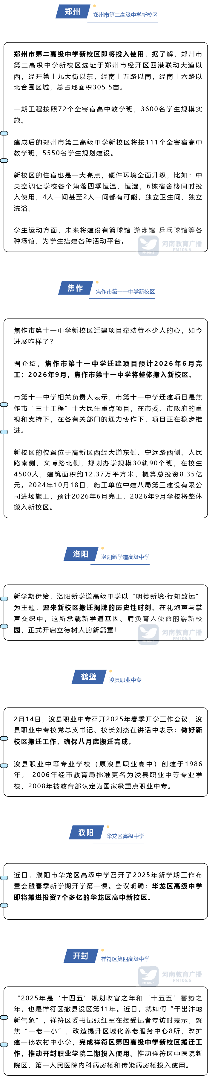 2024年,河南省委、省政府将“大幅改善300所义务教育学校办学条件”列为省重点民生实事,截至2024年年底,全省共开工320个项目,其中新建义务教育学校60所,改扩建260所,新增11.26万个优质学位。2025年,一大批新建(改扩建)学校新校区,将投入使用。一起来看: