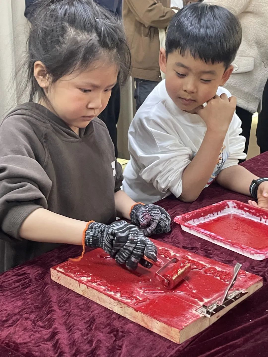 到了亲自动手环节,孩子们兴奋地挑选心仪图案,拿起拓印工具,小心翼翼地为其均匀涂抹墨汁,随后轻轻铺上纸张,专注地轻轻敲打。整个过程中,孩子们屏气敛息,全身心投入。当一幅清晰完整的拓印作品呈现眼前时,这一刻,孩子们真切触摸到中华文化的深厚底蕴,古老技艺在他们心间种下传承的种子。
